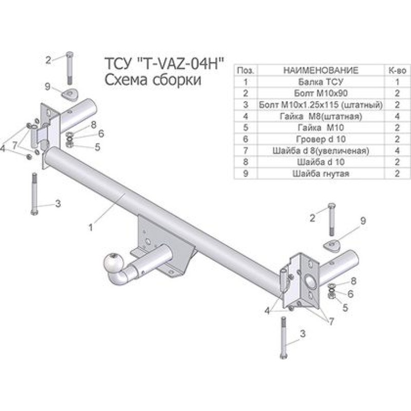 В комплект поставки входит все необходимое для монтажа: балка ТСУ с крюком, метизы, схема установки, семиконтактная розетка, монтажные провода, подробная инструкция по подключению электрики, защитный колпачок и паспорт изделия. Все упаковано в термоусадочную пленку.